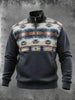 Men's Vintage Western Aztec Pocket Zip Stand Collar Sweatshirt